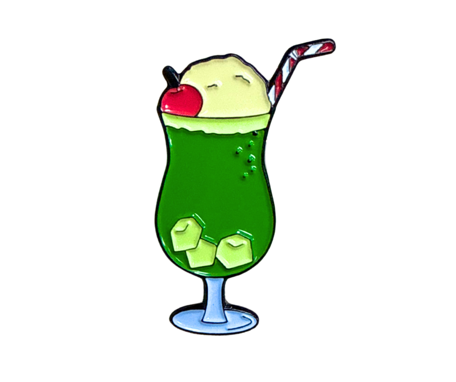 可愛いフォルムのメロンソーダピンバッジ