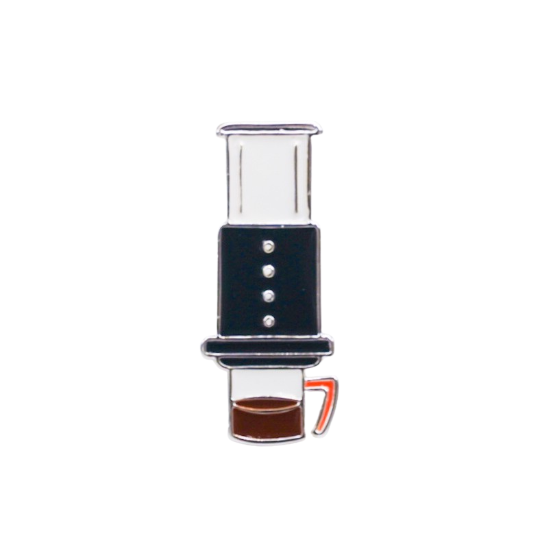 エアロプレスをモチーフにし、抽出シーンを再現したピンバッジです。